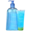 Kit com gel de banho e gel de limpeza facial. Kit Bioderma Atoderm Sébium proporciona limpeza suave e purificante do rosto e do corpo, sem ressecar a pele.